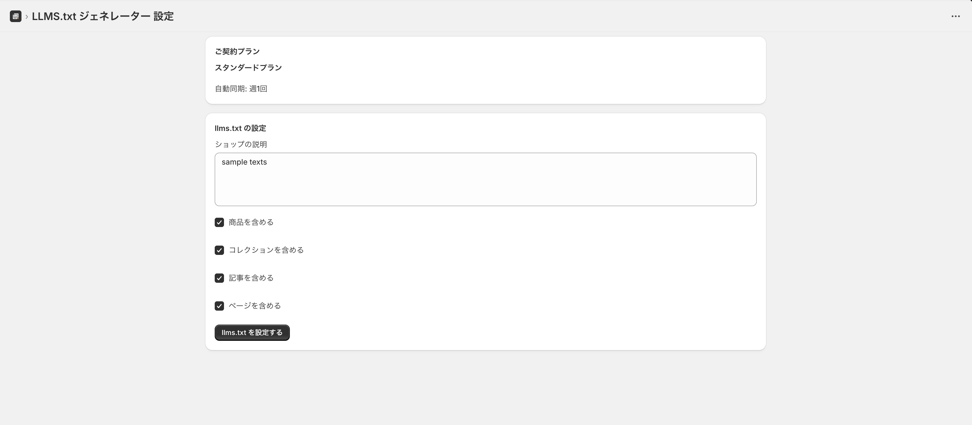 llms.txtを設定する、をクリックで完了です。